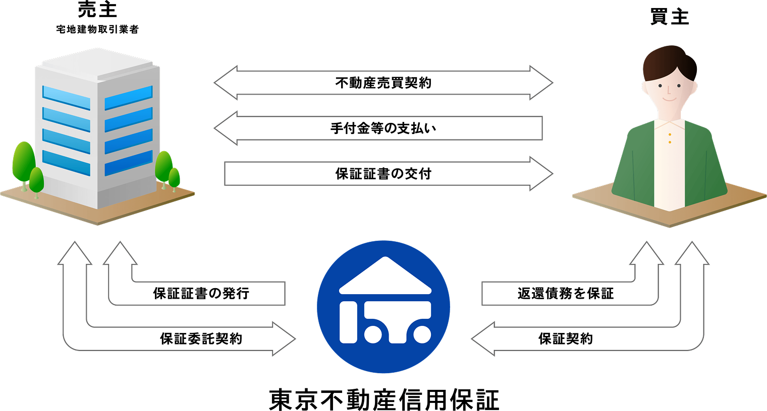 その保全措置の一つが当社の「手付金等保証」で、当社が売主と連帯し、買主に対して手付金等の返還債務を保証する事業です。